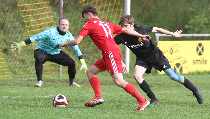 Spvgg. Teufelsfels - TV Grumbach 4:2 (2:2) Schiedsrichter: Jürgen Backes * Es gab bisher noch keine Spiele in der B-Klasse zwischen den beiden Mannschaften. Jan Diener setzte zunächst auf Lorenz, Fuchs, Wenzel, D. Lorenz, Schneider, K. Schneider, Sali, Diener, Eckes, Schmidt und Shnayder. Bank: Paduret, Shutylov, J. Wolf und Podrea. Kevin Schneider war gefeierter, vierfacher Torschütze. Zuschauer: 100.