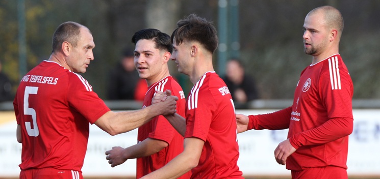 TuS Breitenthal - Spvgg. Teufelsfels 0:3 (0:2) Schiedsrichter: Tim Fabian * 16 Duelle gab e bisher zwischen den beiden Mannschaften in der B-Klasse: Jeweils acht gewannen Teufelsfels sowie die TuS. Teufelsfels startete mit Lorenz, Fuchs, Wenzel, D. Lorenz, K. Schneider, N. E. Schneider, Sali, Diener, Eckes, Schmidt und Shnayder. Jan Diener erzielte die Treffer des Tabellenführers: Er traf in der 27./43. und 79. Minute.