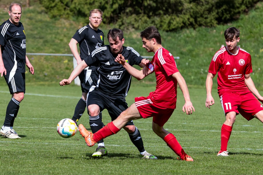 Spvgg.Teufelsfels - SV Göttschied 4:3 (4:0) * Schiedsrichter: Christian Schneider In der Vergangenheit gab es sechs Spiele zwischen den beiden Mannschaften: Drei davon gewann Teufelsfels, zwei der SVG und einmal gab es keinen Sieger. Teufelsfels begann mit Napora, Fuchs, Wenzel, Lorenz, N. E:Schneider, Plesca, AL Akrad, Diener, Eckes, Schnitt, Shnayder. Bank: E: Lorenz, Sali, Wolf, Seidlitz und Zerfaß. Geht es in Durchgang zwei nur noch für Teufelsfels um die Siegeshöhe? Mit Treffern von M. Al Akrad (9./19.) sowie Jan Diener (11./22.) kam die deutliche Halbzeitführung zu Stande. Linus Stephan verkürzt allerdings in der 64. Minute auf 4:1 und in der 85. Minute auf 4:2. Geht da noch etwas? Nerven sind gefragt: In der 91.Minute hat Teufelsfels sogar noch Pech mit einem Eigentor. Doch es bleibt beim knappen 4:3. Zuschauer : 50