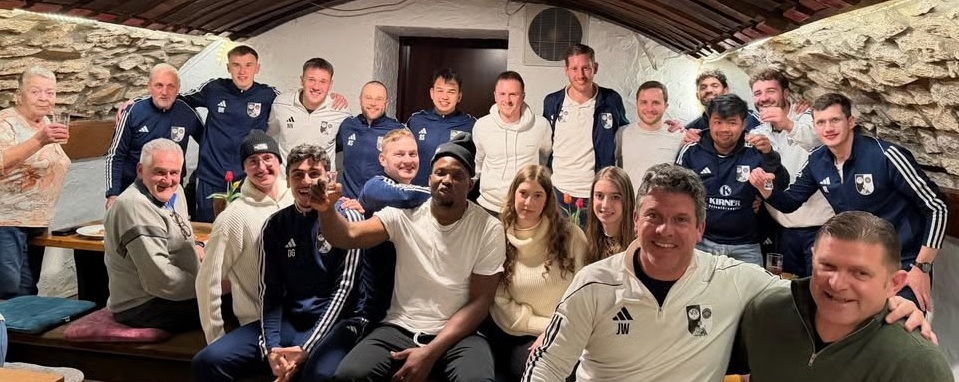 Mit Betreuern und auch Anhängern ging es direkt nach Spiel zum "Team-Essen in der Junkersmühle". "Unsere 1. Mannschaft zeigt eine starke Leistung auf dem Hartplatz in Neu-Bamberg und holt am Ende einen Punkt mit nach Hause. Aufgrund einiger großer Möglichkeiten und einer enormen Druckphase in den Schlussminuten des Spiels hätte man sich den Dreier defnitiv verdient gehabt. Leider konnte man die zum Teil toll herausgespielten Torchancen nicht im Tor unterbringen, was auch am Keeper der Gastgeber lag. Defensiv ließ man nichts anbrennen, sodass unsere Jungs mit einem guten Gefühl in die Osterpause gehen können".